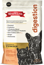 Unit price perThe Missing Link® introduces its new Digestion formula designed to help dogs and cats flourish. This blend combines over 5 billion CFU from seven probiotics per 3 tsp serving with dried chicory root as a prebiotic, plus the brand’s signature fresh ground flaxseed to deliver a balanced Omega profile. Developed by veterinarians, it supports digestive health, enhances nutrient absorption with LactoSpore® probiotics, promotes healthy bowel function, sustains energy, and soothes digestive discomfort—because a healthy gut means a happier pet.