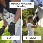 HandsOn Gloves redefine grooming by surpassing traditional curry combs, mitts, and shedders. Secure on your hands whether wet or dry, they deliver a more effective and enjoyable bathing experience for you and your pets. The scrubbing nodules on fingers and palms provide a deep clean and are top-rated for de-shedding. Pet hair easily releases with a simple flick, keeping the gloves ready for continuous use. Their textured, flexible design enhances massage, boosts circulation, and helps distribute natural oils for healthier skin and coat. Gentle enough for delicate areas, these gloves also offer a versatile grip for handling grooming tools and make cleaning tough stains easier. Pets prefer the HandsOn touch, strengthening your bond during grooming. Lightweight and durable, they resist cracking, tearing, and mildew even with heavy use.