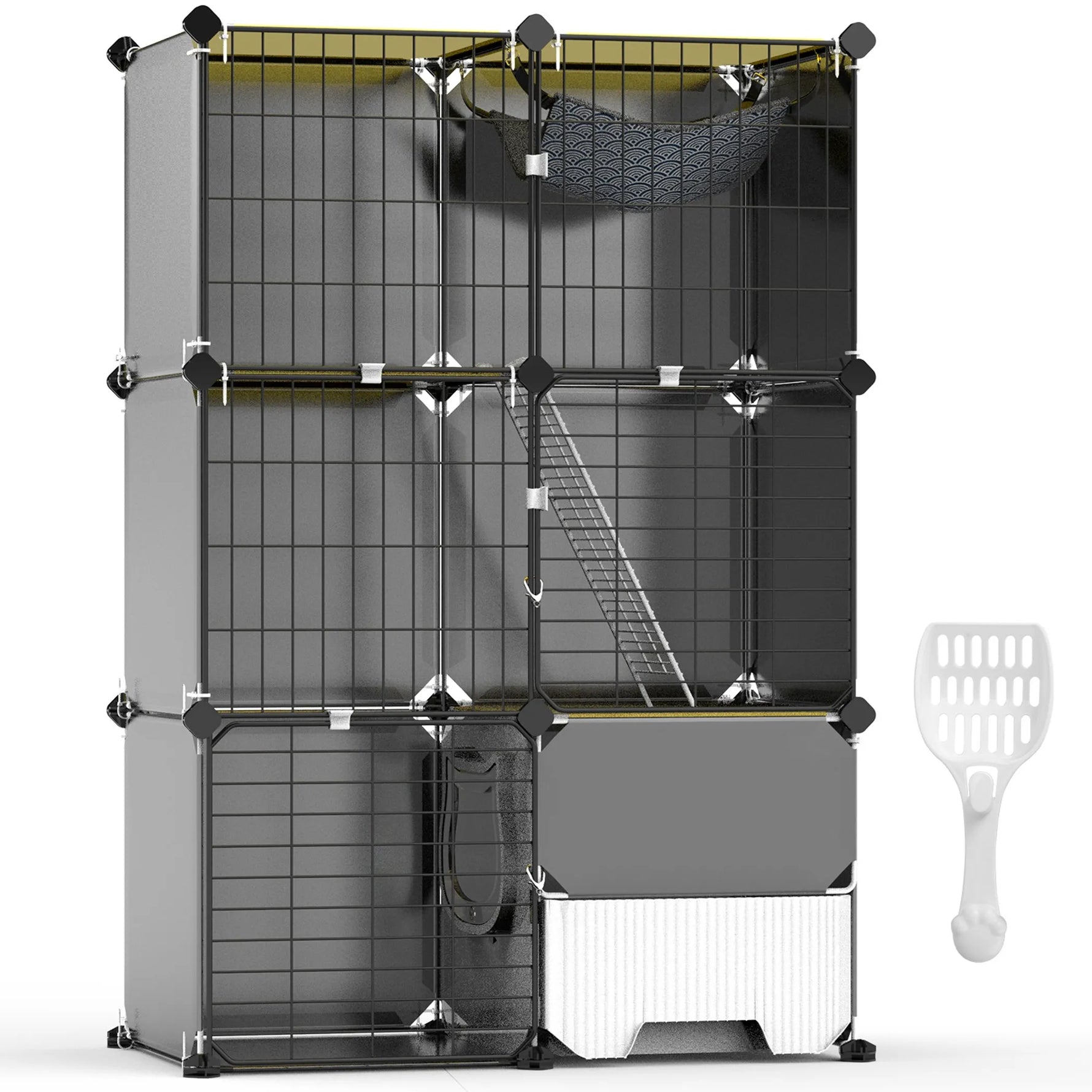 3 Tier Cat Cage Indoor with Litter Box Hammock Detachable Metal