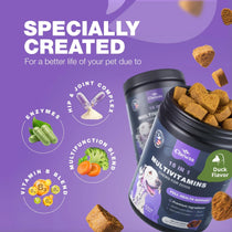 15 IN 1 DOG VITAMINS: Our Dog Multivitamin Chews are packed with essential nutrients to support your dog's overall health. These dog multivitamin chews provide comprehensive dog vitamins and dog immune support to ensure your pet's well-being.