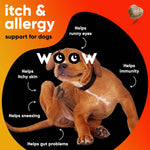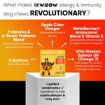 Unit price perSay goodbye to your dog’s allergies with Dr Woow Allergy and Immunity Soft Chews. Packed with Wild Alaskan Salmon Oil, these chews deliver concentrated Omega-3 fatty acids (EPA and DHA) to support a strong immune system and ease allergy symptoms. The formula features a patented antioxidant blend (Bettaberries®), Vitamin E, and Colostrum to enhance immune response and allergy support. It also promotes digestive health with prebiotics from Yea-Sacc® and apple cider vinegar, plus a 6-strain probiotic blend for better nutrient absorption. Dogs love the tasty duck flavor, and you’ll appreciate the natural, grain-free recipe made sustainably. Perfect for dogs of all ages and sizes.